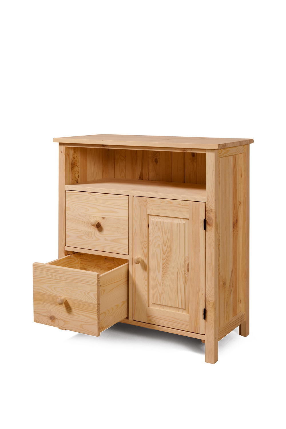 Корпус, ящики и дверцы изготовлены из массива сосны.