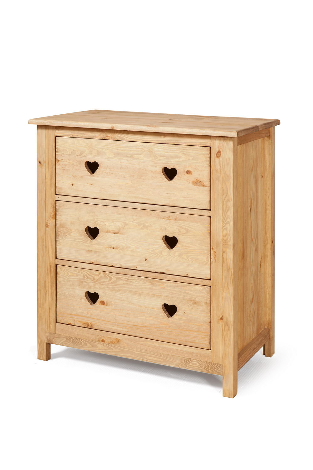 Корпус, ящики, полка и дверцы изготовлены из массива сосны.