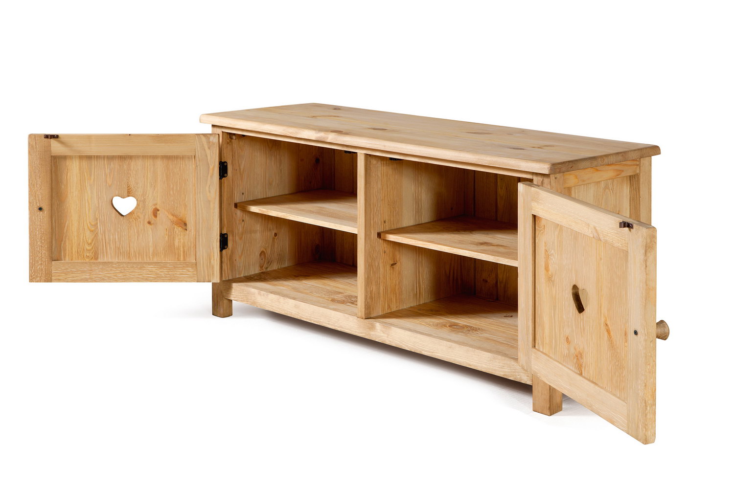 Корпус, полки и дверцы изготовлены из массива сосны.