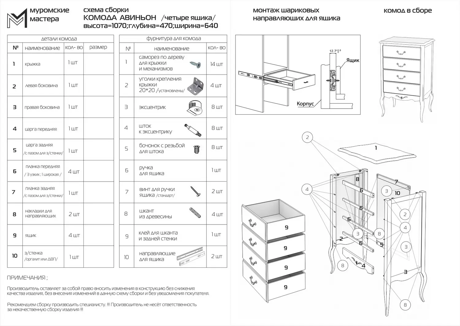 Обращаем Ваше внимание, что качественная сборка мебели является сложным процессом, который требует профессионального подхода. Поэтому настоятельно рекомендуем заказывать нашу сборку, т.к. в нашей компании работают только высококвалифицированные сборщики, имеющие многолетний опыт работы в этой сфере деятельности. В случае приглашения сторонних специалистов, мы не несем ответственности за качество и правильность сборки. Исправления и недостатки "такой" сборки производятся путем заказа базовой услуги в компании по действующим тарифам.