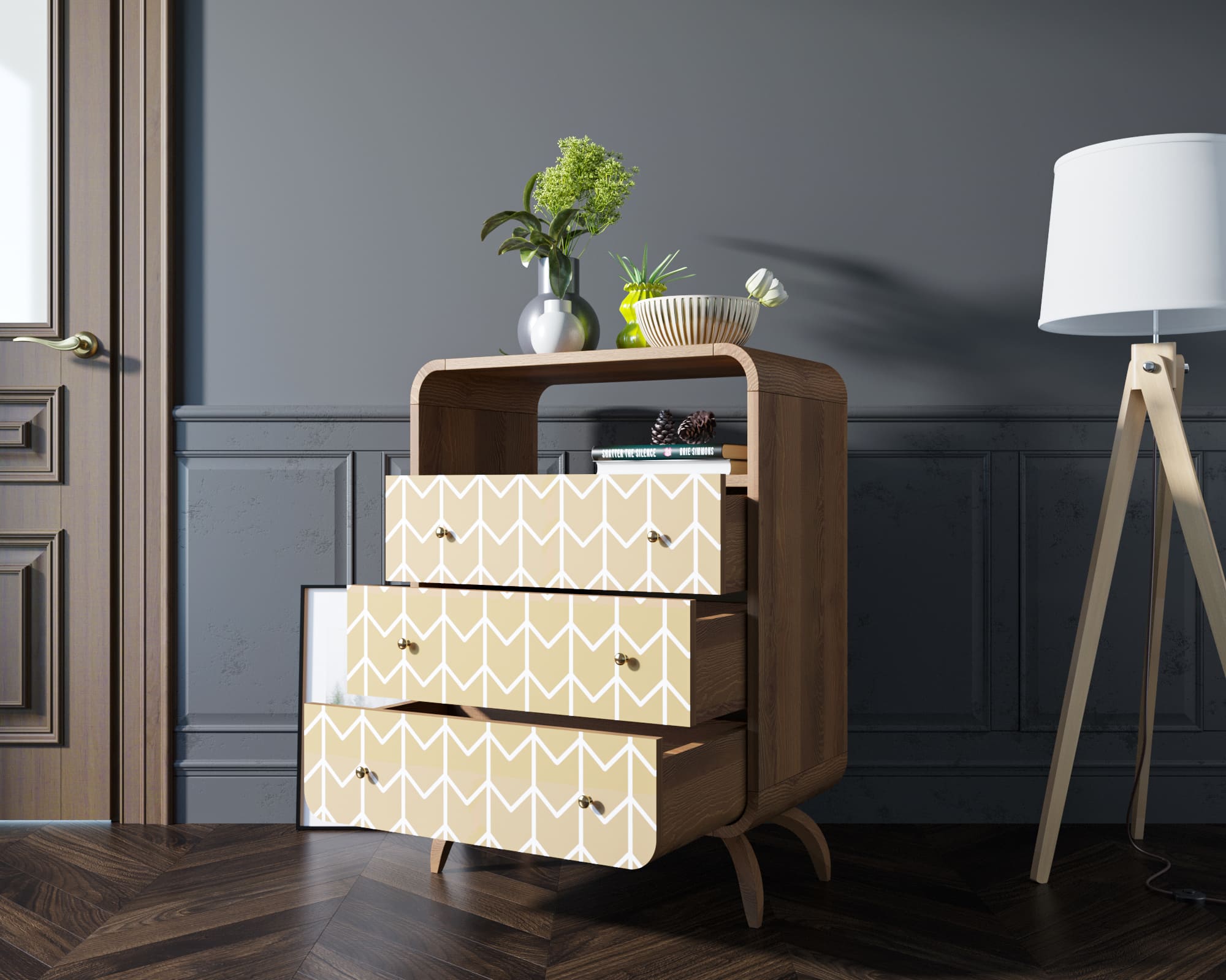В этой коллекции вы найдёте комоды разных размеров: широкие, высокие и низкие. Все они имеют необычный дизайн с закруглёнными формами и фасадами с принтами. У изделий нет прямых углов, что придаёт им особый шарм.
