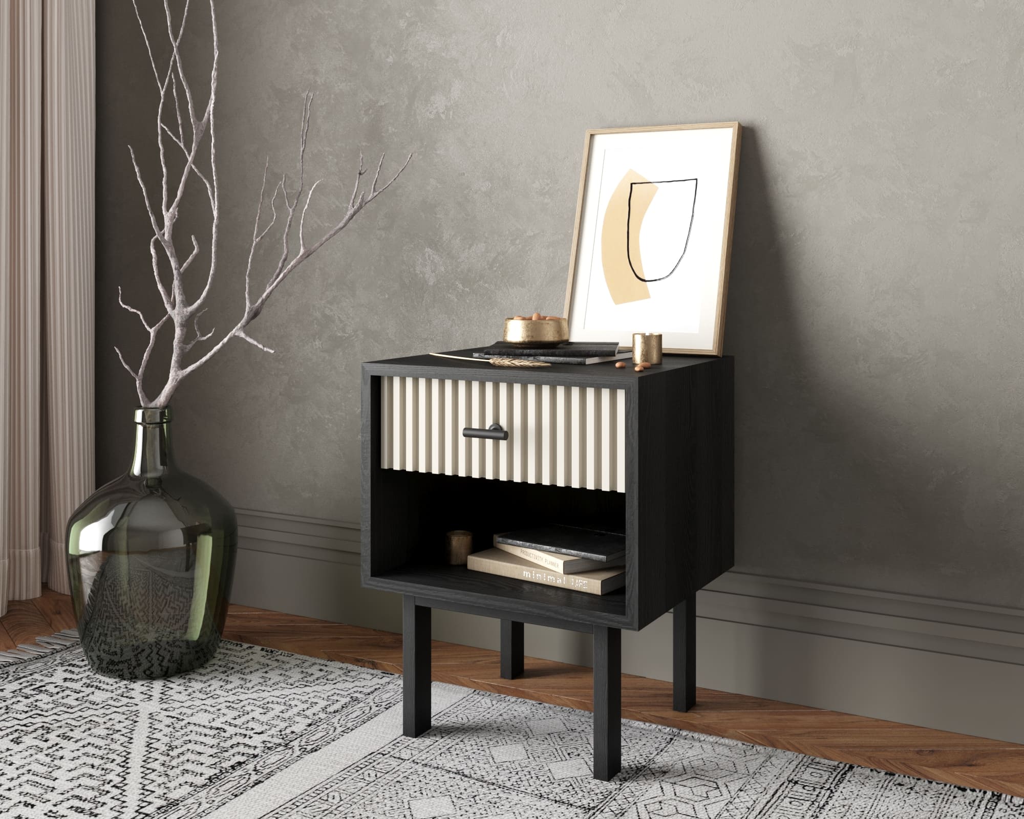 Тумбочка с верхним ящиком "Emerson" арт EM11/milky/L