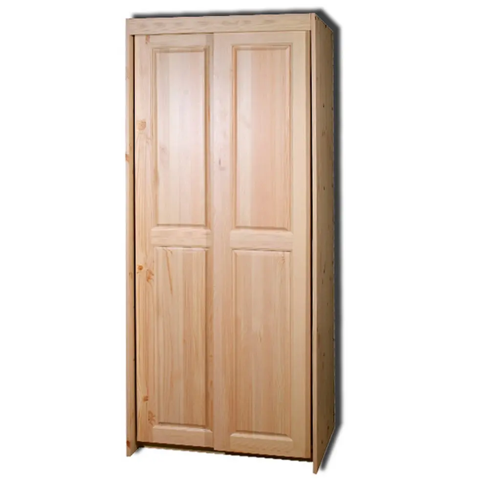 Комбинированный шкаф из массива сосны. Отделение с полками - 1/2, отделение со штангой для плечиков - 1/2. Возможны различные варианты тонировки.