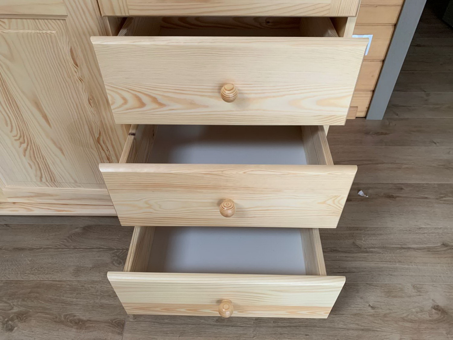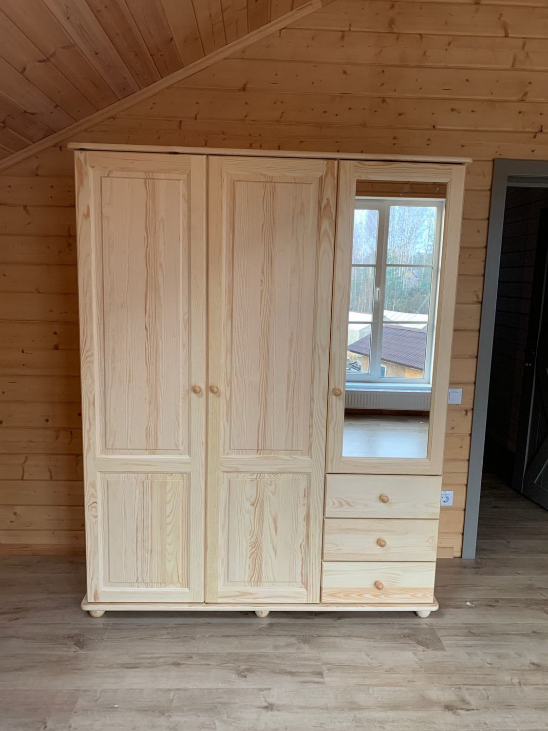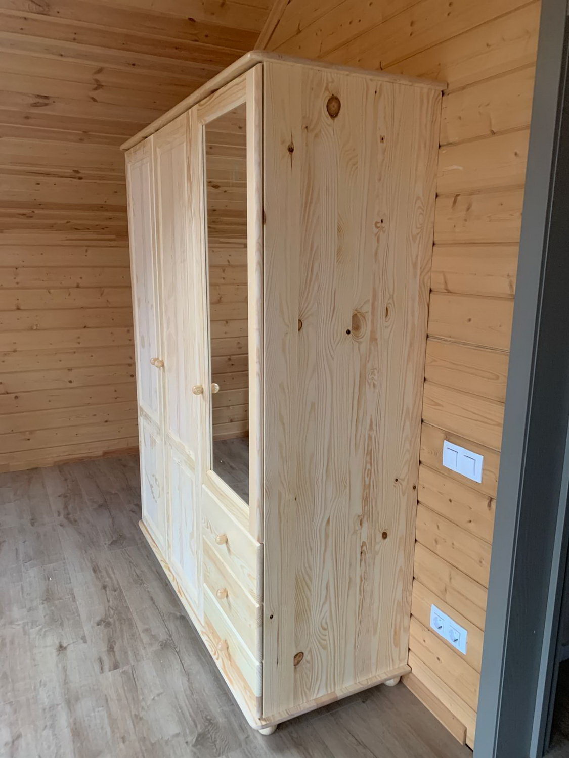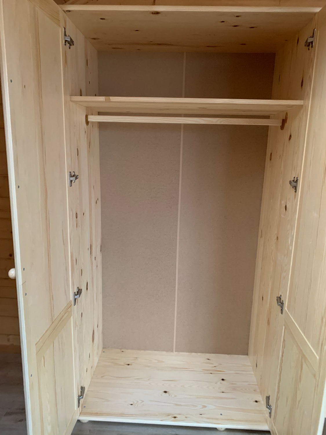 При изготовлении шкафа, кроме натурального дерева, не применяется никакие другие материалы, наподобие дсп, мдф и многих других материалов, которые могли бы поставить под сомнение экологичность изделия. Кроме того, сосна также отличается и привлекательным внешним видом. Кому-то может показаться, что сосновая древесина недостаточно прочная и долговечная, однако эта проблема давно осталась в прошлом, поскольку современные технологии обработки дерева позволяют любой материал сделать удивительно износостойким и защитить его практически от любых внешних воздействий, которые могут разрушить необработанное дерево.