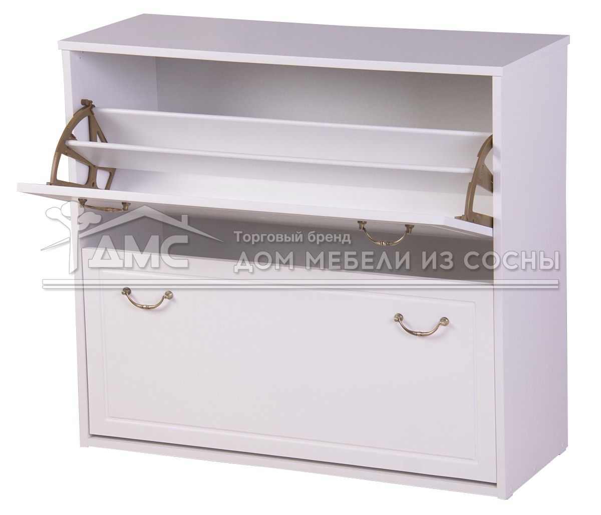 Верхний ящик обувницы «Фея» вмещает несколько пар обуви, которую так легко достать благодаря специальному механизму. Это позволит вам быстро найти нужную пару обуви и сэкономить время.