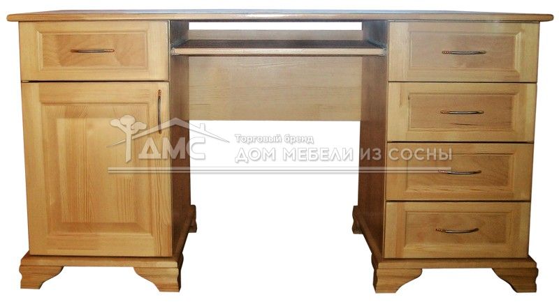 Этот письменный стол выполнен в классическом стиле и изготовлен из массива натурального дерева. Он не только красив, но и функционален: в подстолье расположены выдвижные ящики и секция для хранения за распашной дверцей. Это позволит вам удобно разместить все необходимые вещи и документы.