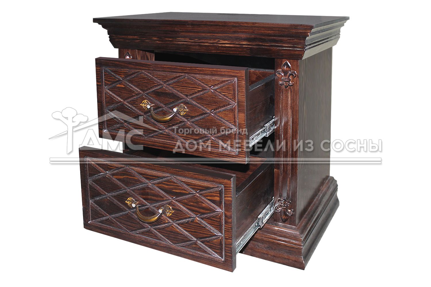 Ящики тумбы удобны для хранения снятых на ночь украшений, очков, косметических средств и других мелочей. Благодаря кубической форме, тумба смотрится выразительно и стильно. Отделка придаёт ей особый шарм.