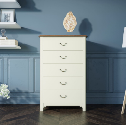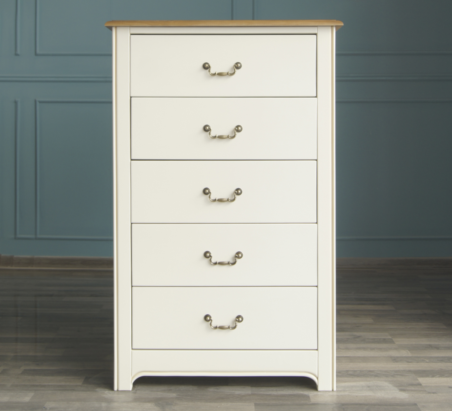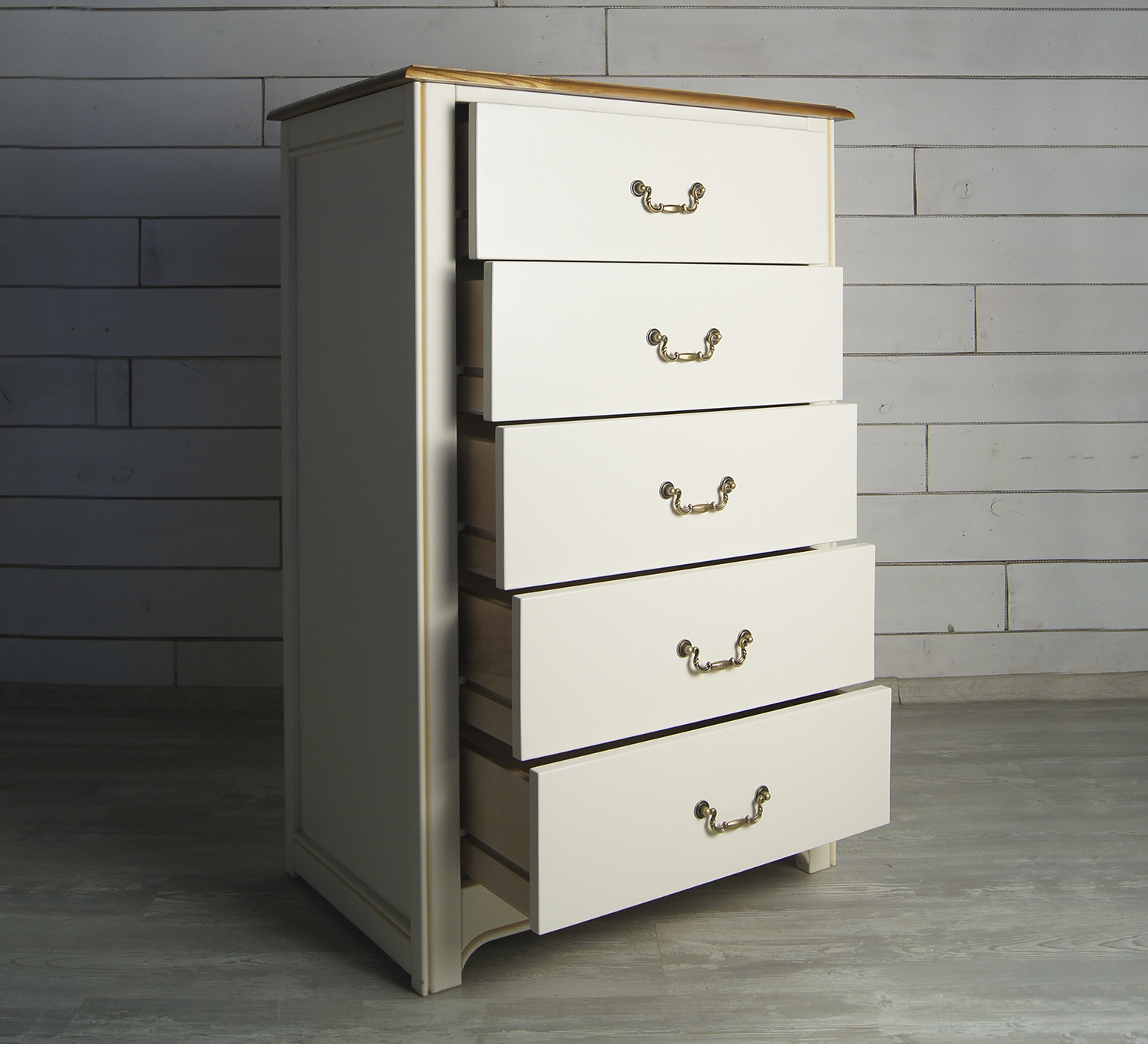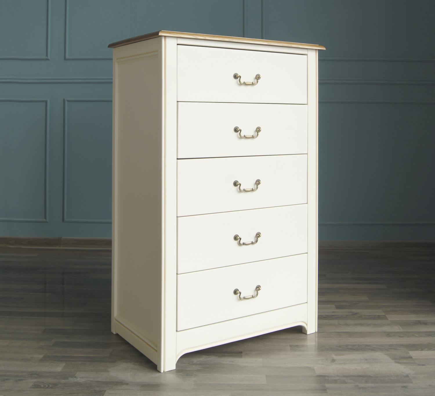 Комод "Olivia" высокий на 5 ящиков исполнен в традиционном стиле французского кантри.