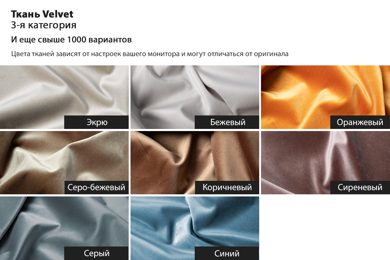 - Материал: обивка - велюр, каркас и ножки - дерево, наполнитель ППУ