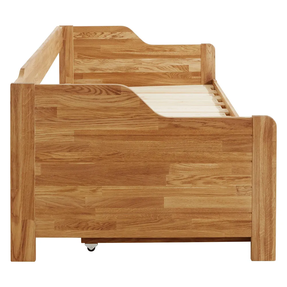 Кровать-тахта «Фрита» — это идеальное сочетание стиля, комфорта и надёжности. Каркас кровати изготовлен из натурального дерева – массива дуба. Можно выбрать один из шести цветов отделки: бейц-масло, дуб венге, дуб отбеленный, дуб паркетный, темная вишня, итальянский орех.