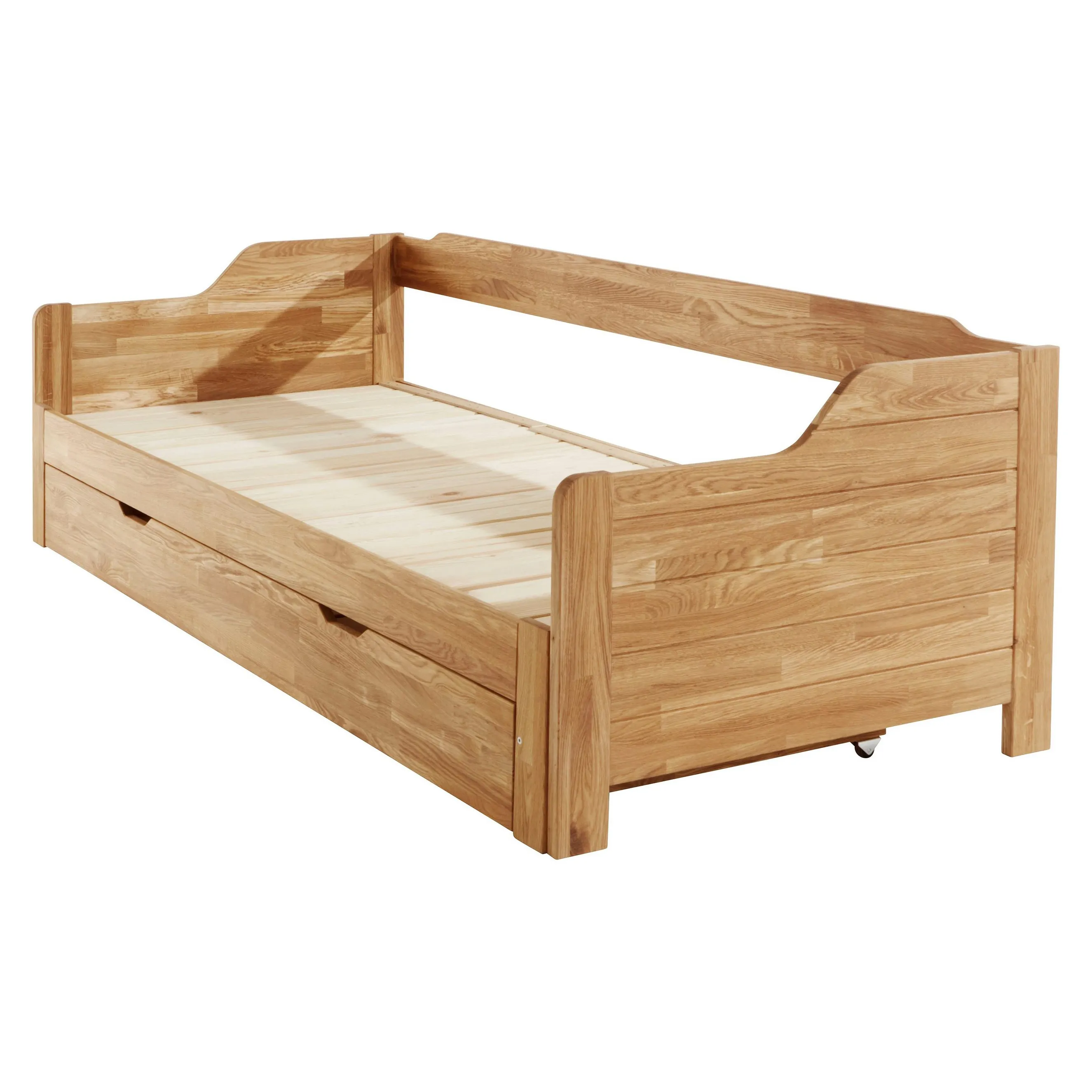 Кровать имеет механизм раскладывания и легко превращается в двуспальную. В комплект входит большой бельевой ящик на роликах. Реечное основание также поставляется с кроватью. Габариты изделия 900х2050х675 мм, размер спального места — 900х2000 мм. Изделие поставляется в разобранном виде, в 3 упаковках. Прилагается инструкция по сборке, но мы рекомендуем воспользоваться услугами профессиональных сборщиков мебели.
