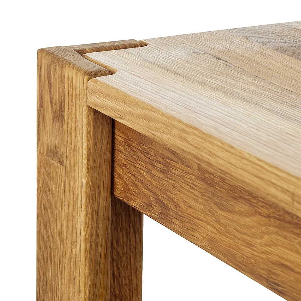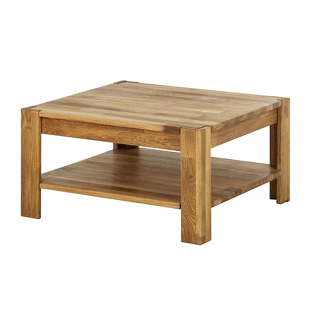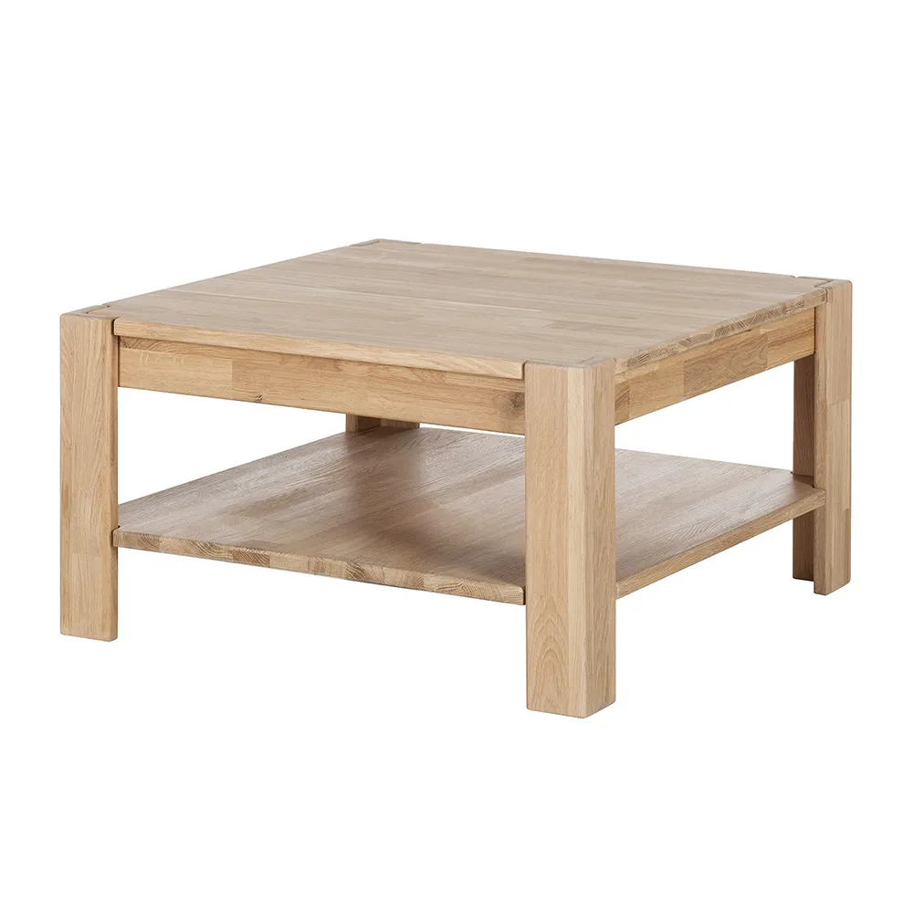 Столик изготовлен из натурального и долговечного материала – массива дуба. Доступно шесть вариантов отделки: бейц-масло, дуб отбеленный, дуб паркетный, дуб венге, тёмная вишня и итальянский орех. Вы можете выбрать тот вариант, который лучше всего подойдёт к вашему интерьеру. Столик имеет массивные прямые ножки, очень устойчивый. Внизу есть полка для книг, журналов или настольных игр. Габариты стола 1100х700х380 мм, вес — 32 кг. Гарантия на стол составляет 1 год.