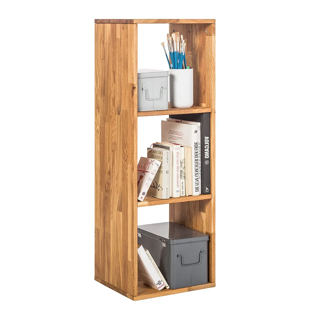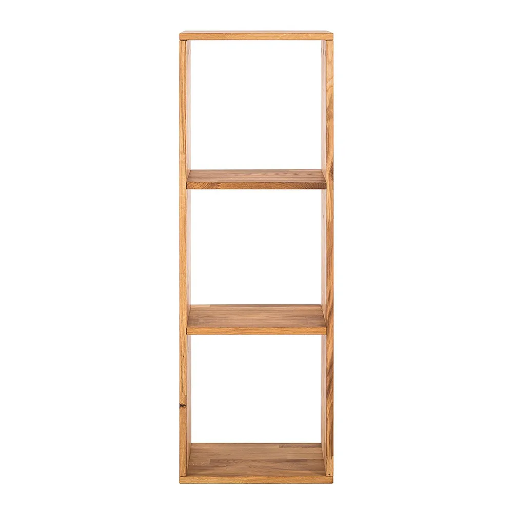Стеллаж изготавливается из натурального долговечного материала – массива дуба. Дерево имеет красивую текстуру и приятно на ощупь. У стеллажа одна секция с тремя полками. Он поставляется в разобранном виде, в одной упаковке. Размеры стеллажа 390х350х1130 мм, вес 21 кг.