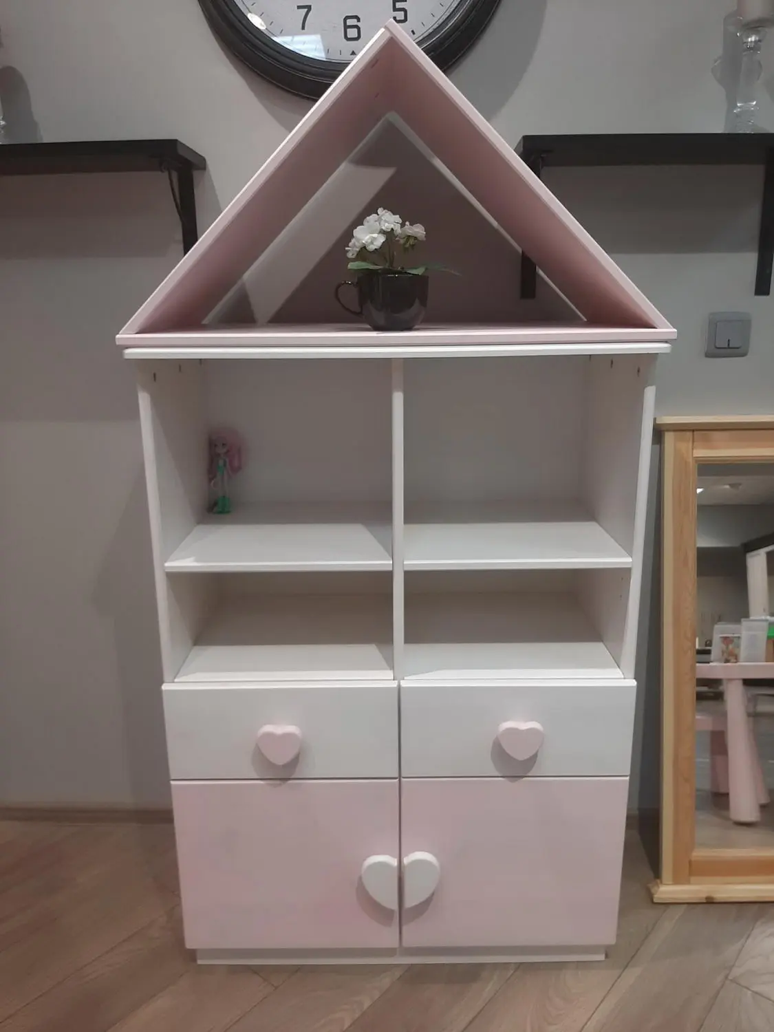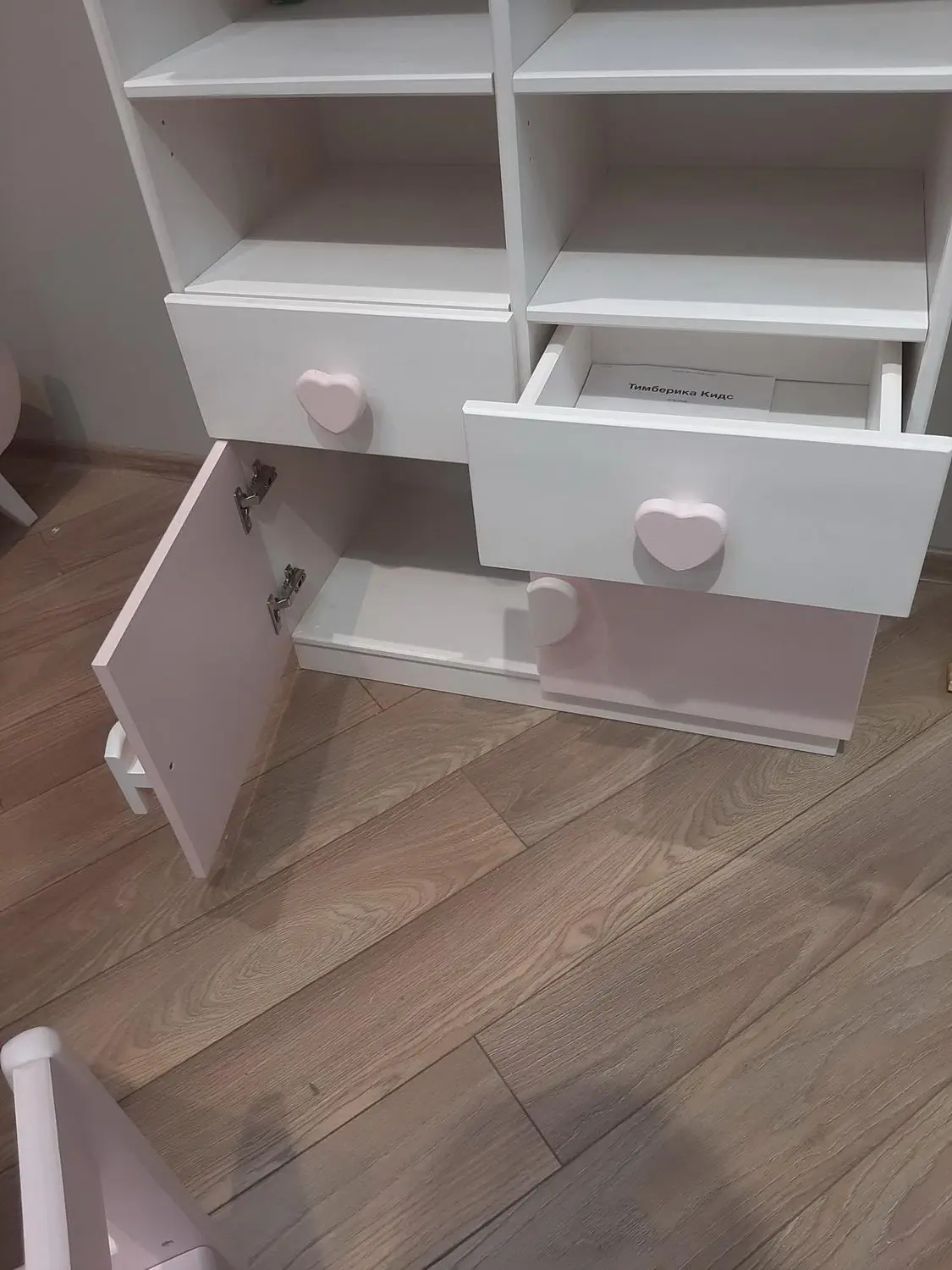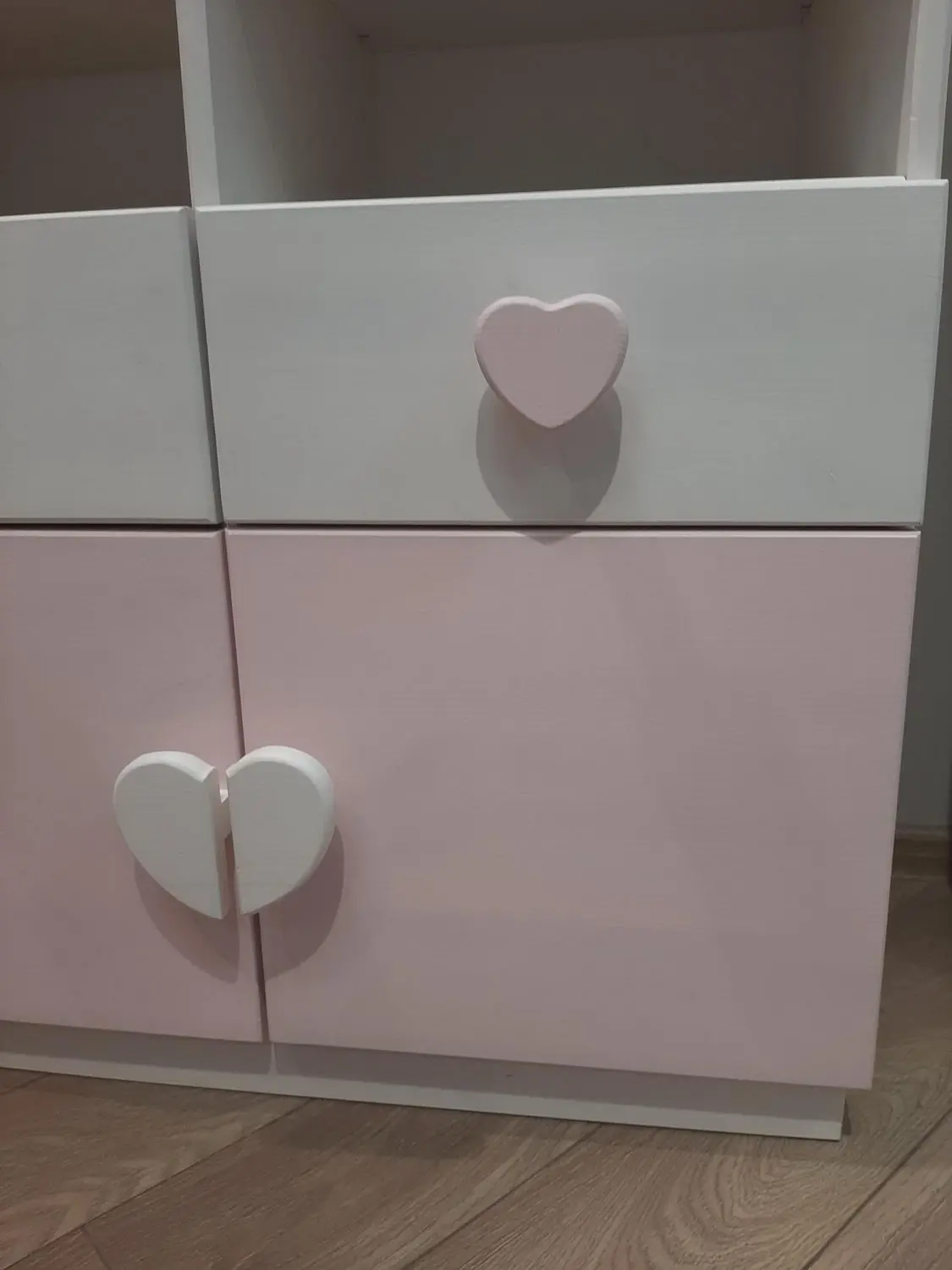 Ручки по выбору — деревянные кнопки (по умолчанию), кружки, квадраты, сердечки (на фото), запилы.