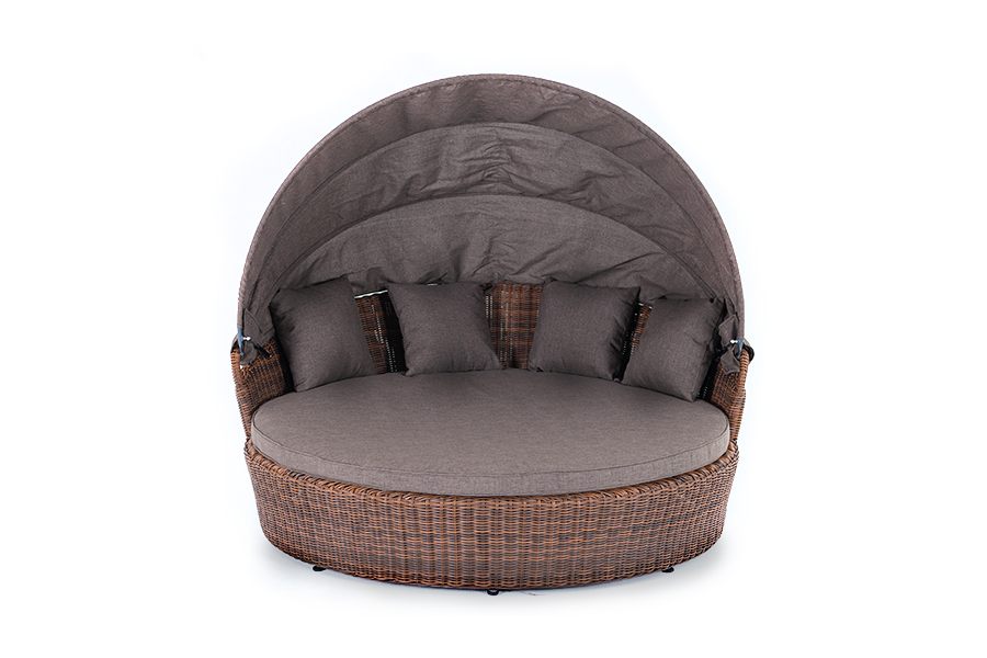 Круглая кровать из искусственного ротанга коричневого цвета "Стильяно" собрана на базе каркаса, выполненного из алюминия. Данная модель обладает диаметром 1800 мм и высотой в 700 мм, укомплектована матрасом и четырьмя подушками из полиэстера, плотностью 230гр/м2. Чехлы на подушках и матрасе с влагоотталкивающими свойствами, благодаря специальной пропитке. Кровать оборудована козырьком с возможностью его регулировки.