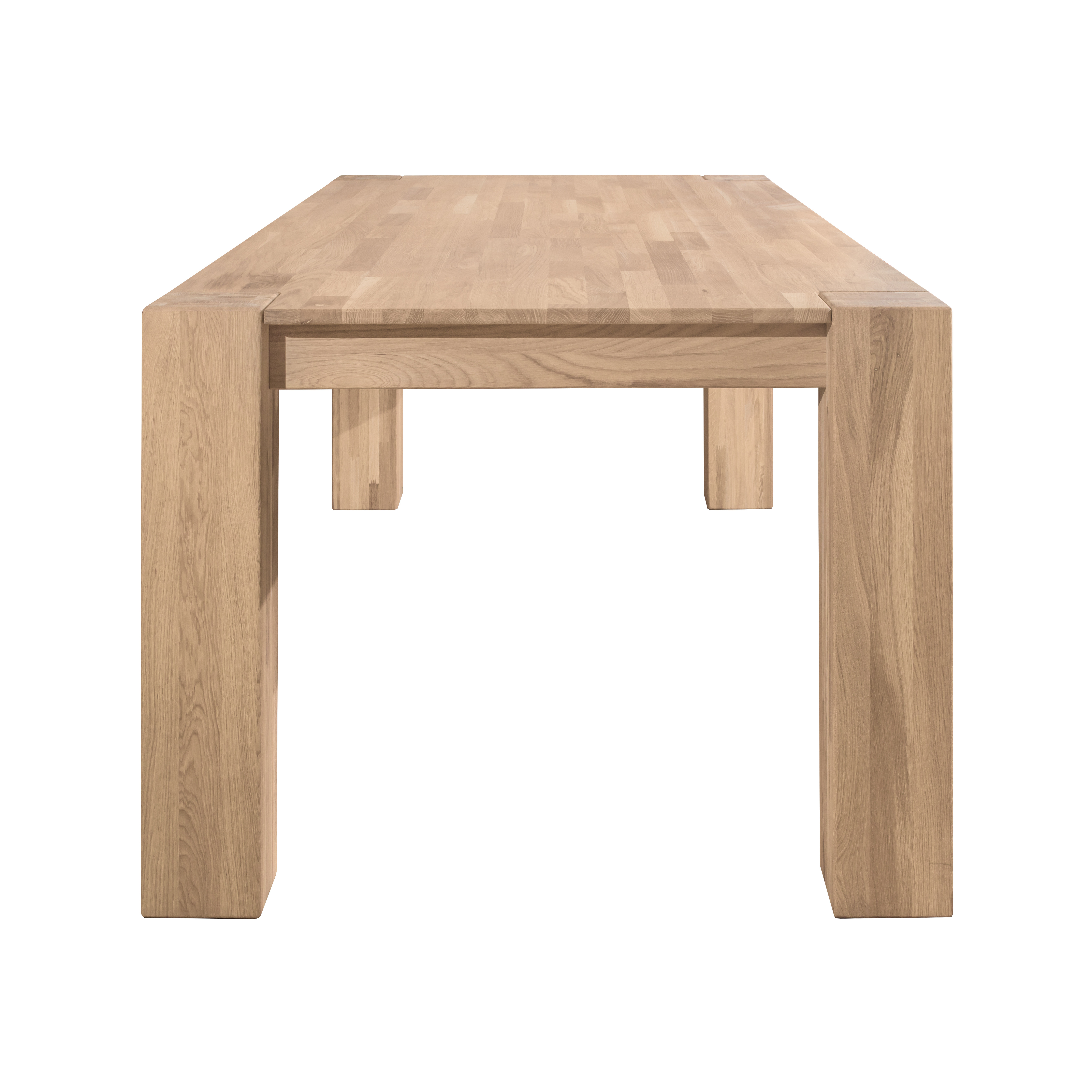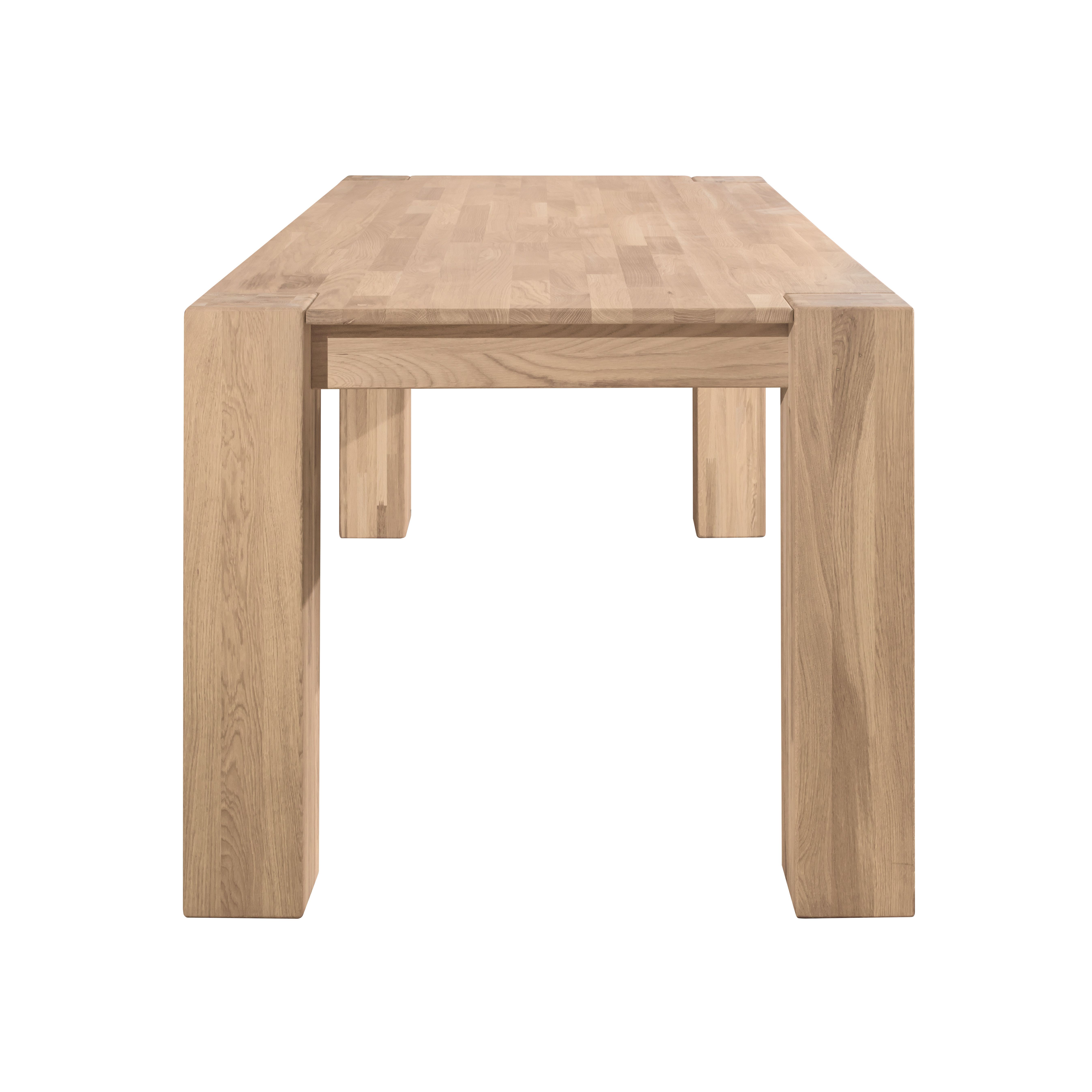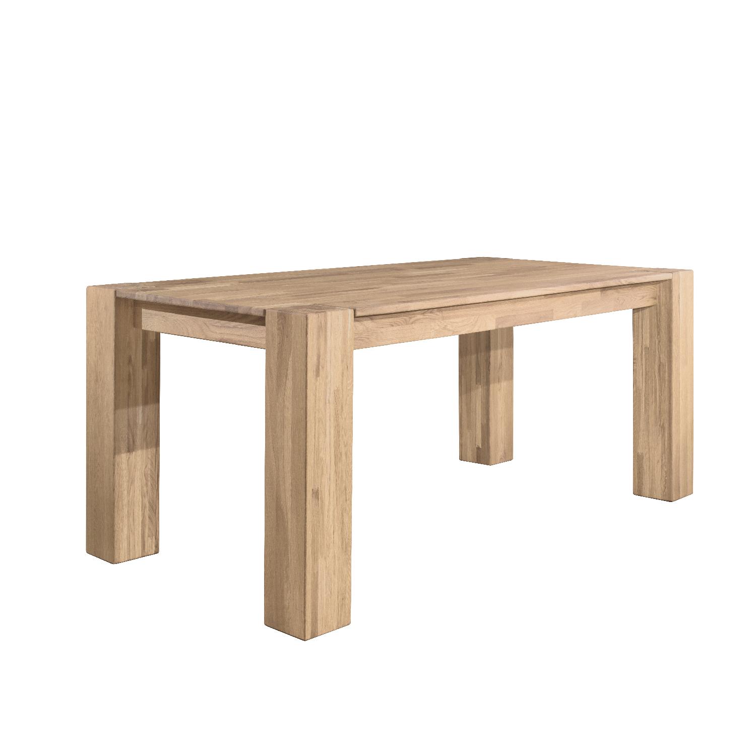 Стол изготовлен из натурального и долговечного материала – массива дуба, при этом сохраняется природная древесная текстура. Доступно шесть вариантов отделки: бейц-масло, дуб отбеленный, дуб паркетный, дуб венге, тёмная вишня и итальянский орех. Вы можете выбрать тот вариант, который лучше всего подойдёт к вашему интерьеру. Столик имеет устойчивые массивные ножки 150х150 мм.