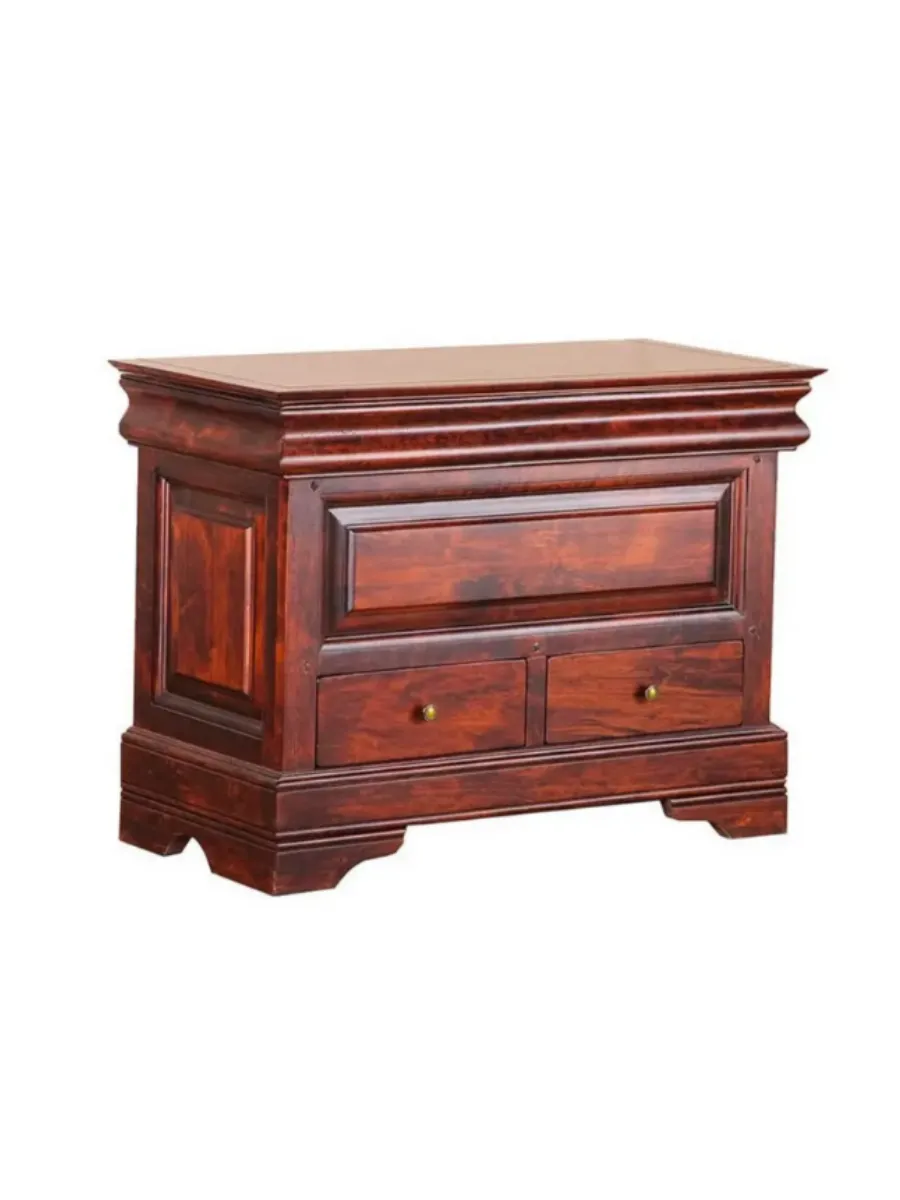 Сундук имеет внутреннее отделение под крышкой и два выдвижных ящика. Размеры тумбы 880х430х650 мм, вес 31 кг. Поставляется в собранном виде, гарантийный срок 1 год. Обратите внимание, что сундук, как и вся коллекция «Луи Филипп», делается на заказ. Сроки изготовления уточняйте у наших продавцов в салонах или по телефону на сайте.