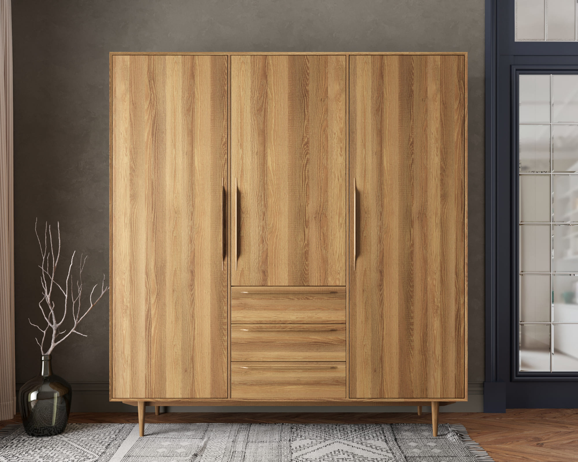 Трехстворчатый шкаф "Bruni" определенно станет главным функциональным предметом Вашей спальной зоны, неся в себе лаконичность, стиль и практичность и будет прекрасным дополнением в спальне в скандинавском стиле.