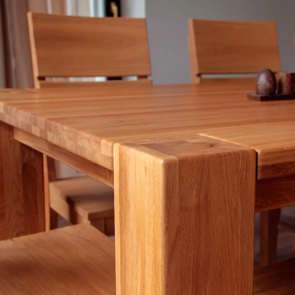 Стол обеденный 2200*1000*750 столешница с фальшпанелью (фальшпанель - декоративный элемент визуально увеличивающий толщину столешницы, Сечение ног стола 120*120 мм , столешница толщиной 40 мм. Стол изготовлен из массива дуба. Особенности: в изготовлении используется цельноламельный щит.