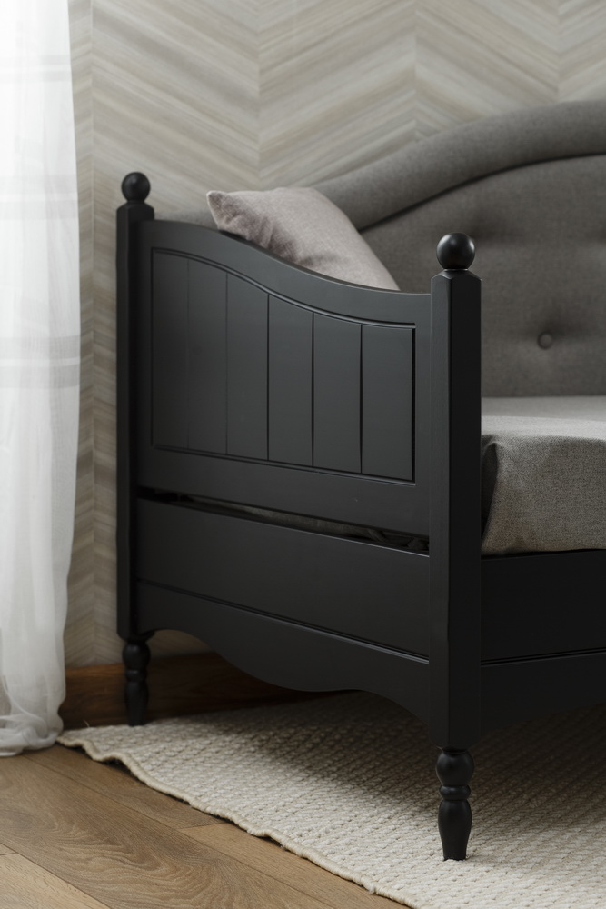 Тахта чёрная Айно №9 с мягким изголовьем 800х2000