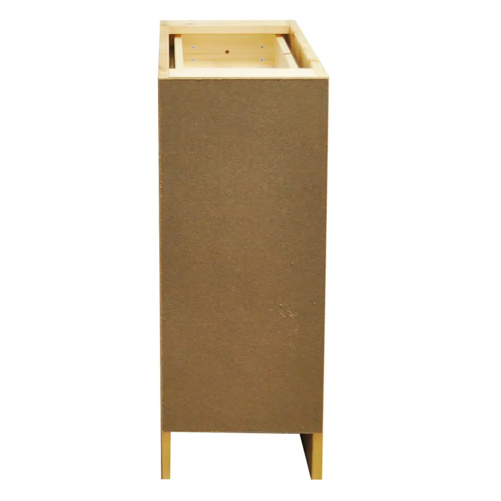 Тумба изготовлена из высококачественного мебельного щита толщиной 20 мм, прочного и долговечного. Задняя стенка и дно ящика сделаны из оргалита. Внутренне пространство тумбы разделено полкой. Ящик на шариковых направляющих полного выдвижения, рассчитан на нагрузку до 25 кг. Дверные петли оснащены механизмом плавного доведения. Отделка УФ-лаком от крупного производителя The Sherwin-Williams Company (всё, кроме фасадов) и итальянским НЦ-лаком (фасады) придаёт шкафу элегантный и современный вид. В комплекте идут удобные деревянные ручки-кнопки. Столешницу можно заказать отдельно.