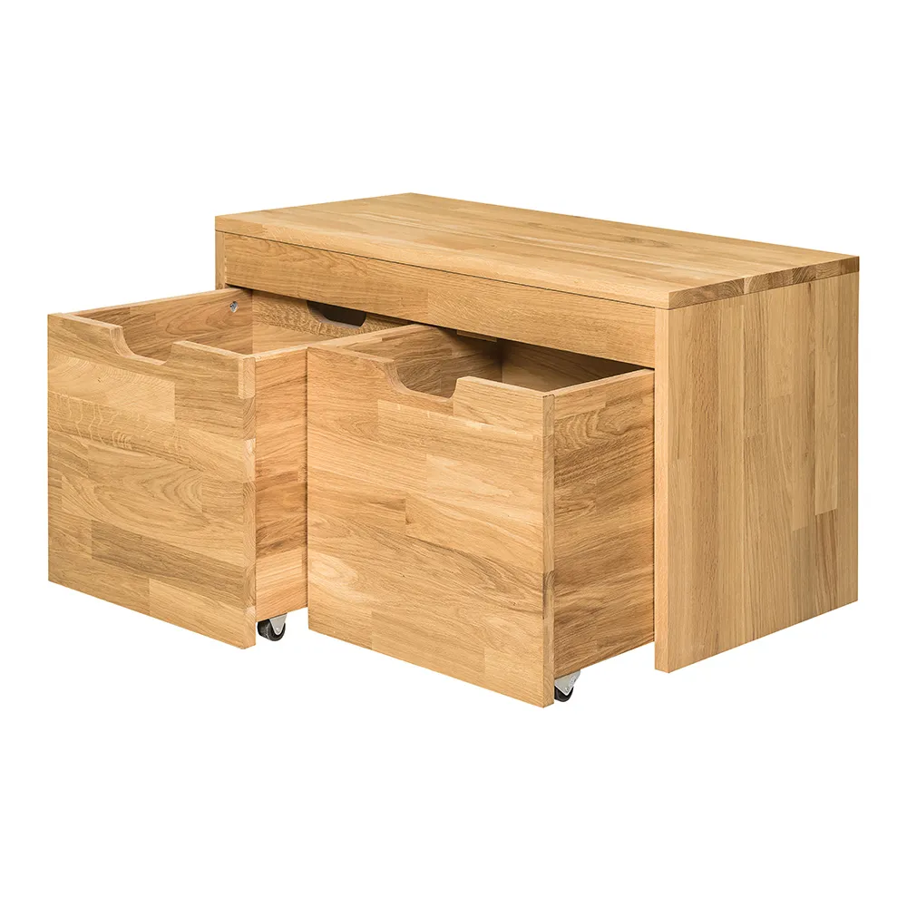 Скамья имеет два больших выкатных ящика с фрезерованными ручками. Поставляется в собранном виде, весит 33 кг. Габаритные размеры 820х400х450 мм.