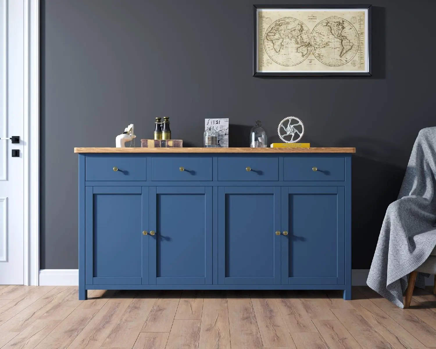 Для изготовления корпусов и фасадов используется массив березы, столешницы производятся из массива ясеня, а ящики и некоторые другие элементы из березовой фанеры. Ящики устанавливаются на шариковых направляющих без доводчиков. На ящиках и дверцах ручки-кнопки из латуни. Мебель может быть тонирована не только в базовые цвета, как на фото (синий/антик), но и в любой выбранный цвет по таблицам RAL. Уточняйте это при заказе. Для окрашивания применяются сертифицированные красители Sayerlack (Италия).