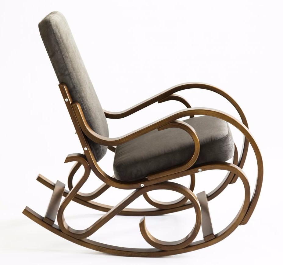 Кресло-качалка с тканевой обивкой цвета Грей Браун и каркасом цвета Вишня